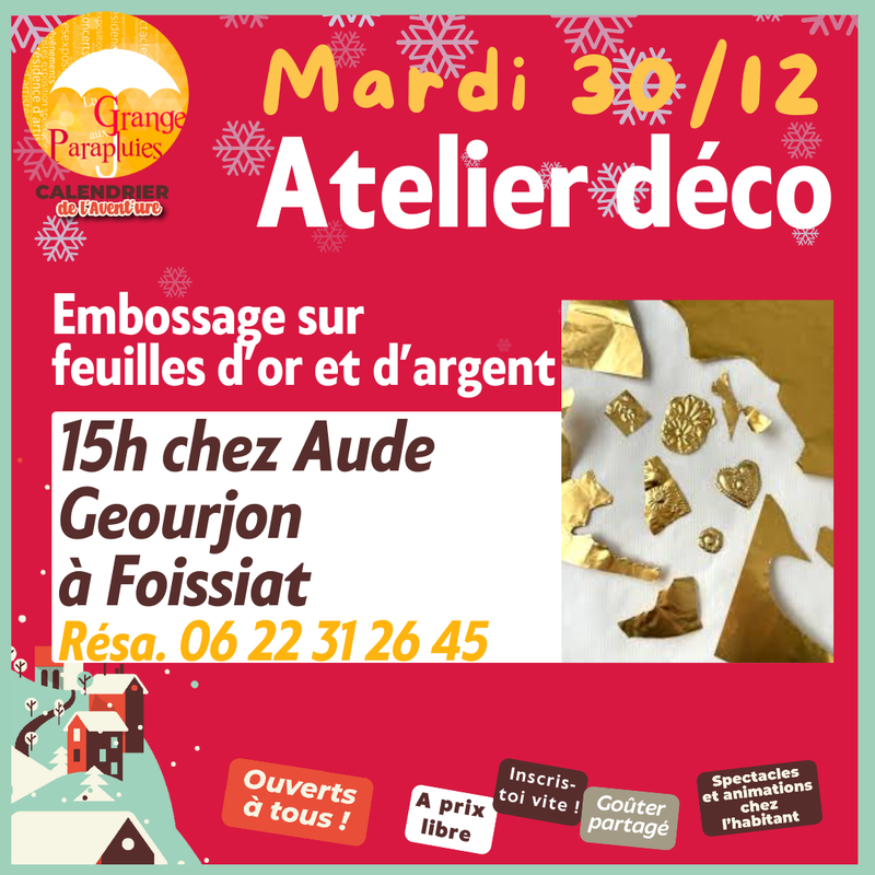 le 30/12 Atelier déco : Embossage sur feuille d'or et d'argent